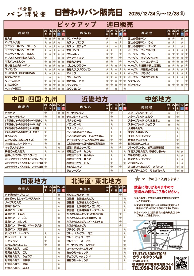 株式会社いまじん白揚(本社:愛知県春日井市)は、全国のご当地パンを集めたイベント『全国パン博覧会』をTSUTAYA いまじん白揚瀬戸店(愛知県瀬戸市)、TSUTAYA いまじん白揚ミタス伊勢店(三重県伊勢市)、TSUTAYA いまじん白揚ウイングタウン岡崎店(愛知県岡崎市)、TSUTAYA BOOKSTOREカラフルタウン岐阜(岐阜県岐阜市)で、12月3日(水)より順次開催します。