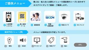 店舗運営省力化ソリューション「ほんたす」は、営業時間延長による売上創出や、無人化・省人化によるコスト削減を実現する、日販が提供するサービスです。<完全無人化><有人・無人のハイブリッド化><有人運営時間の省人化><24時間営業化>など、希望する運営形態や規模・予算など店舗ごとのニーズに応じて、「入店管理システム」「無人接客ツール」「遠隔接客サービス」「警備・設備制御」など、複数メニューを自由に組み合わせて導入できるソリューションとして提供されています。