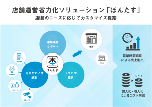 ▲店舗運営省力化ソリューション「ほんたす」のスキーム図